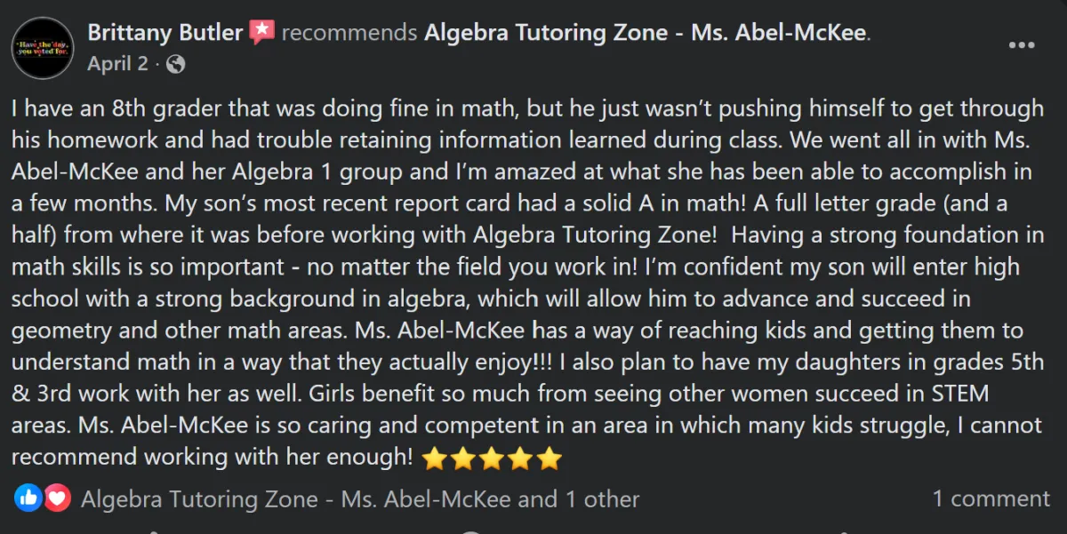 Hello, thank you for checking out Algebra Tutoring Zone! We would love to share some information about our current ongoing tutoring pathways with you!